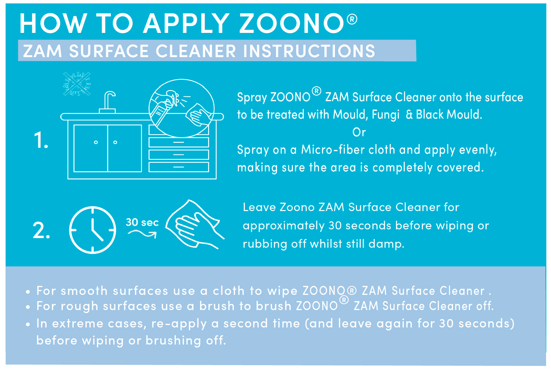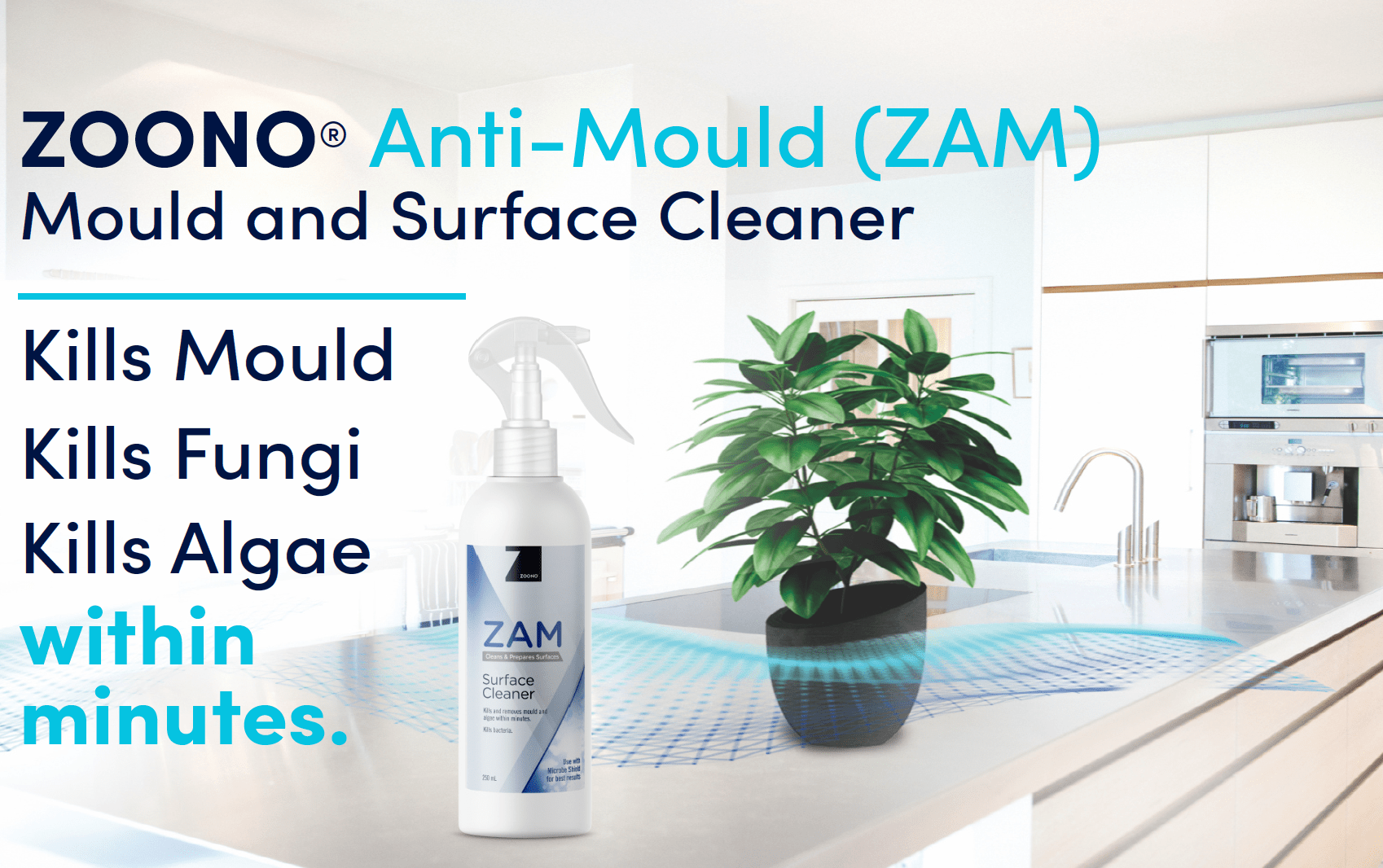 Zoono Anti-Mould (ZAM) Mould cleaner is ideal for protecting floors, kitchens and all surfaces where mould may be present.